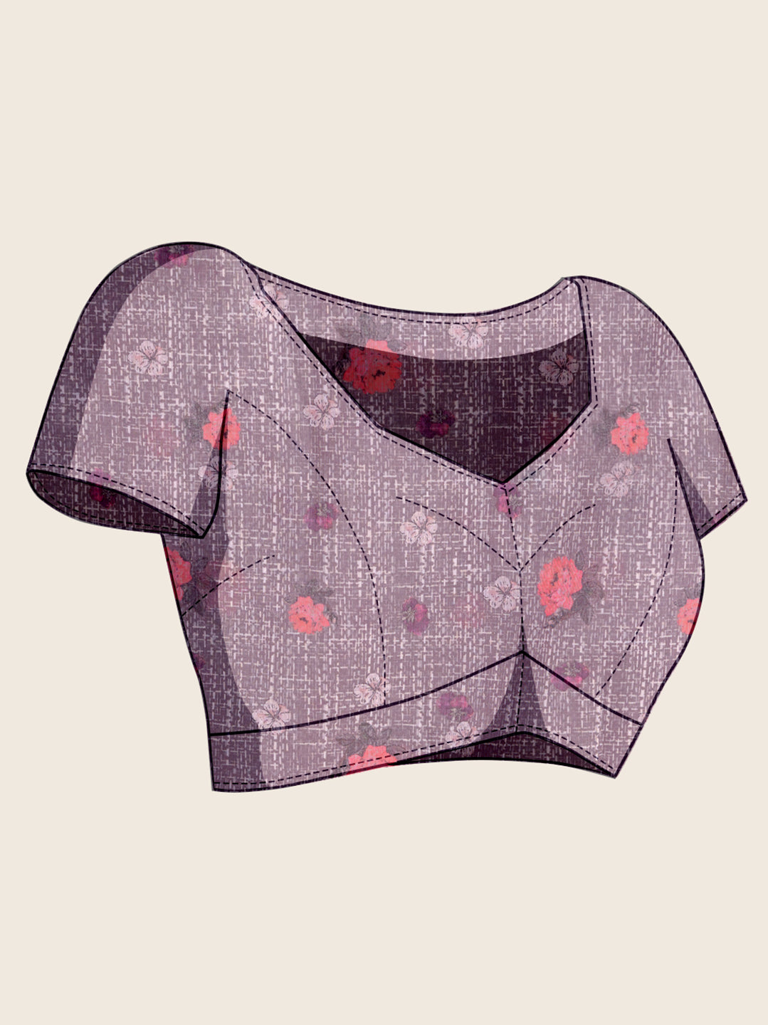 Baby Pink Linen Cotton Saree With Flower Digital Printed Work