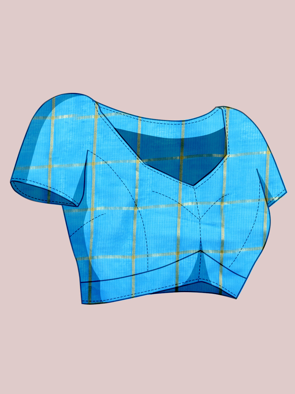 Sky Blue Kota Doriya Saree With Zari Weaving Work