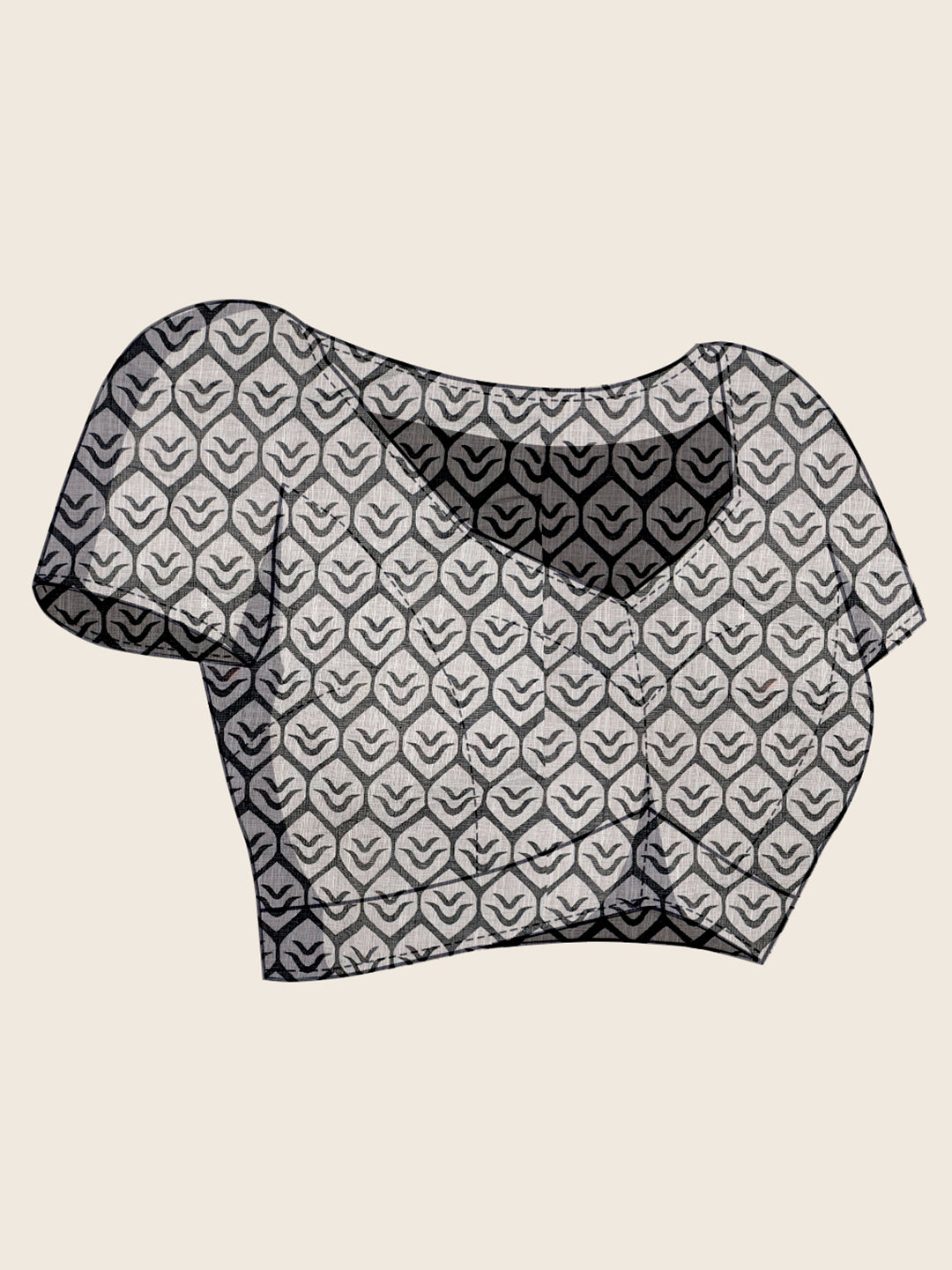 Beige Summer Special Digital Printed Linen Cotton Saree